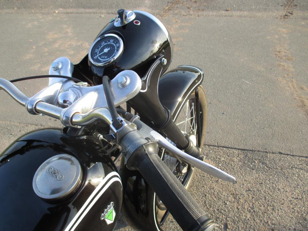 Das ist sozusagen ein"Audi" Mopped. Wurde in Ingolstadt gebaut. Das Emblem umfasst die heute bekannten Ringe und den Schriftzug Autounion.