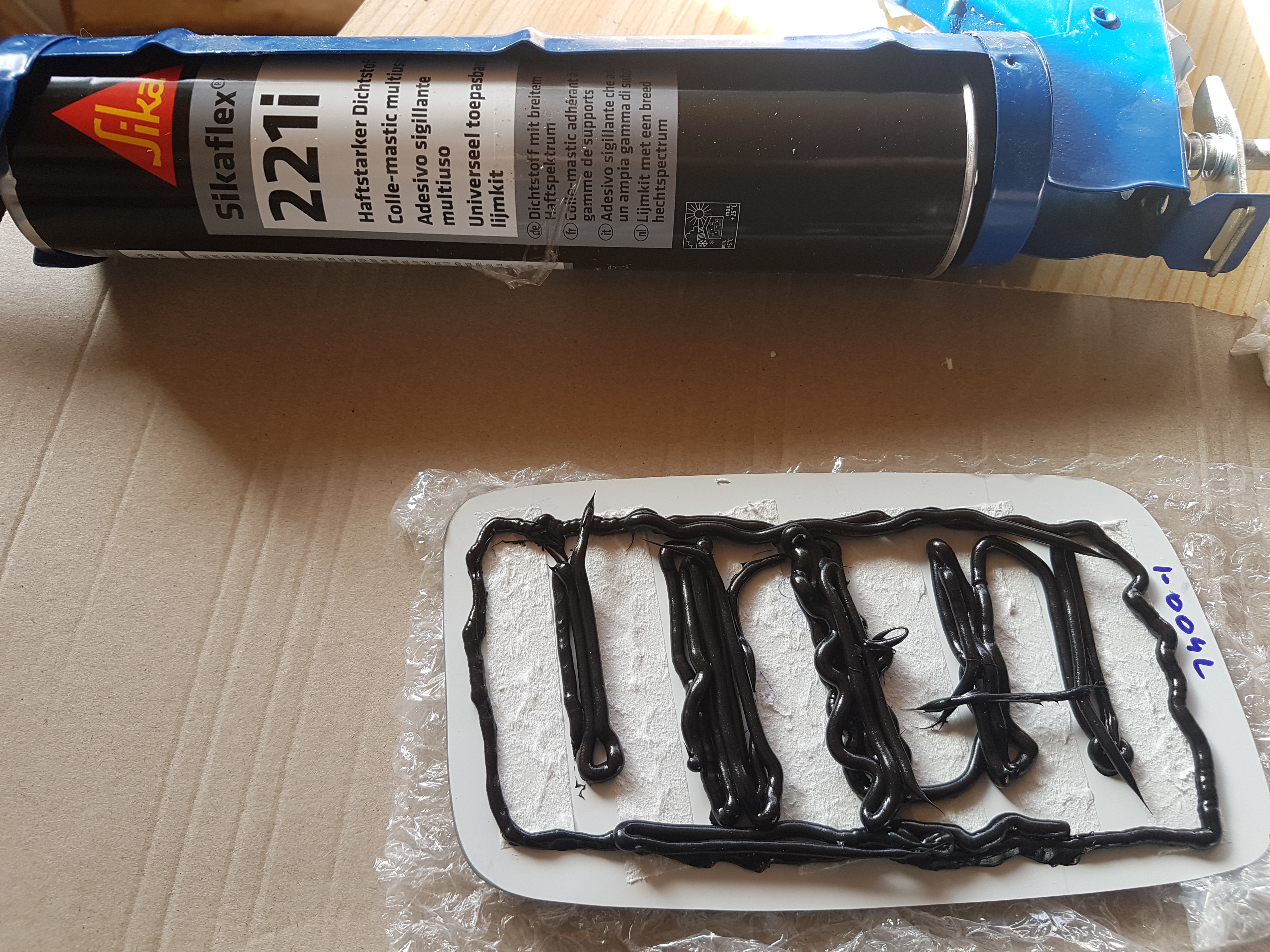 Der Sikaflex Kleber wird nicht flüssig. Wie gesagt, habe meine gerade hingelegt, entfettet, ein paar Kleberraupen auf das neue Glas, aufgesetzt und leicht angedrückt. So dann trocknen lassen.