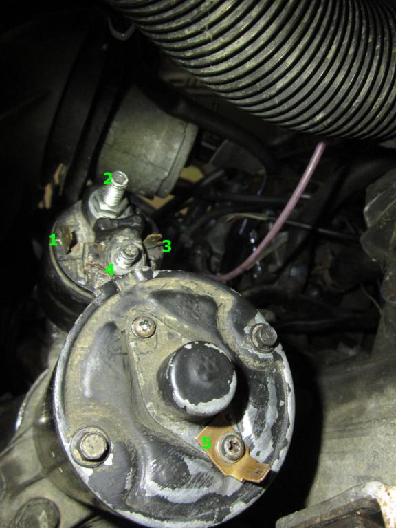 Ich habe das im Schraubstock mit der Batterie getestet wo was passiert. Daher habe ich das Blech (nr 5) mit ans gehäuse angeschraubt damit ich die Masse dort draufstecken kann. Wobei mir jetzt gerade so einfällt dass der Anlasser ja sowieso Masse bekommt wenn er am Motor festgeschraubt wird also wozu dann das Kabel?