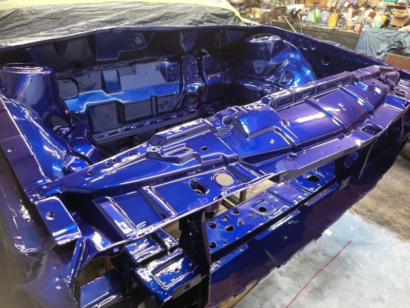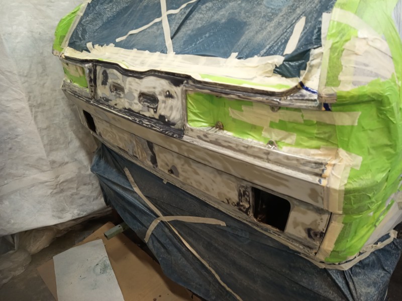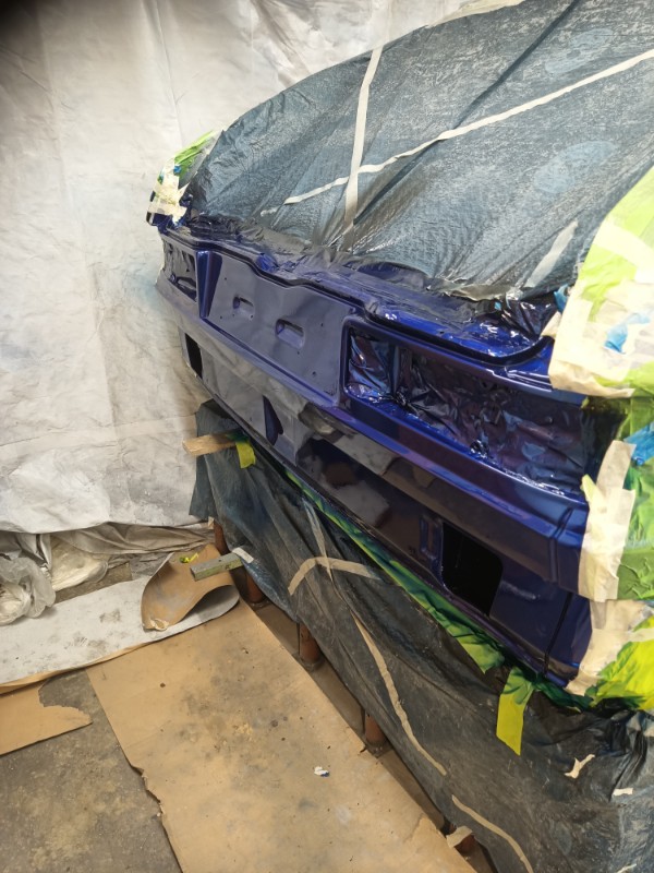 Also, alles abkleben, schleifen, nochmal umkleben, grundieren, Basislack. Klarlack dann morgen. Nur für den Motorraum waren es rund 1,5L Basislack... und man schleift gut 2 Tage dran herum. Hoffe ich habe alles erwischt, so das nachher die Farbe gut hält.