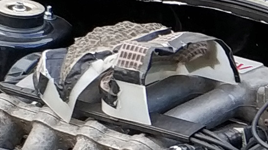 Dies ist das einzige Bild was ich dir anbieten kann. So zerschnitten (und mit Strumpfhose beklebt) kann man es montieren ohne den Scheibenwischer ausbauen zu müssen. Um eine Überlappung zu haben habe ich etwas Panzertape an der Schnittstelle überstehen lassen.