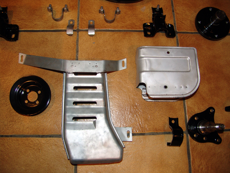 Auspuff sandgestrahlt und mit hitzebeständiger Farbe lackiert, dann die Antriebswellen gestrahlt und neu gelackt, ebenso HA-Aufnahme...