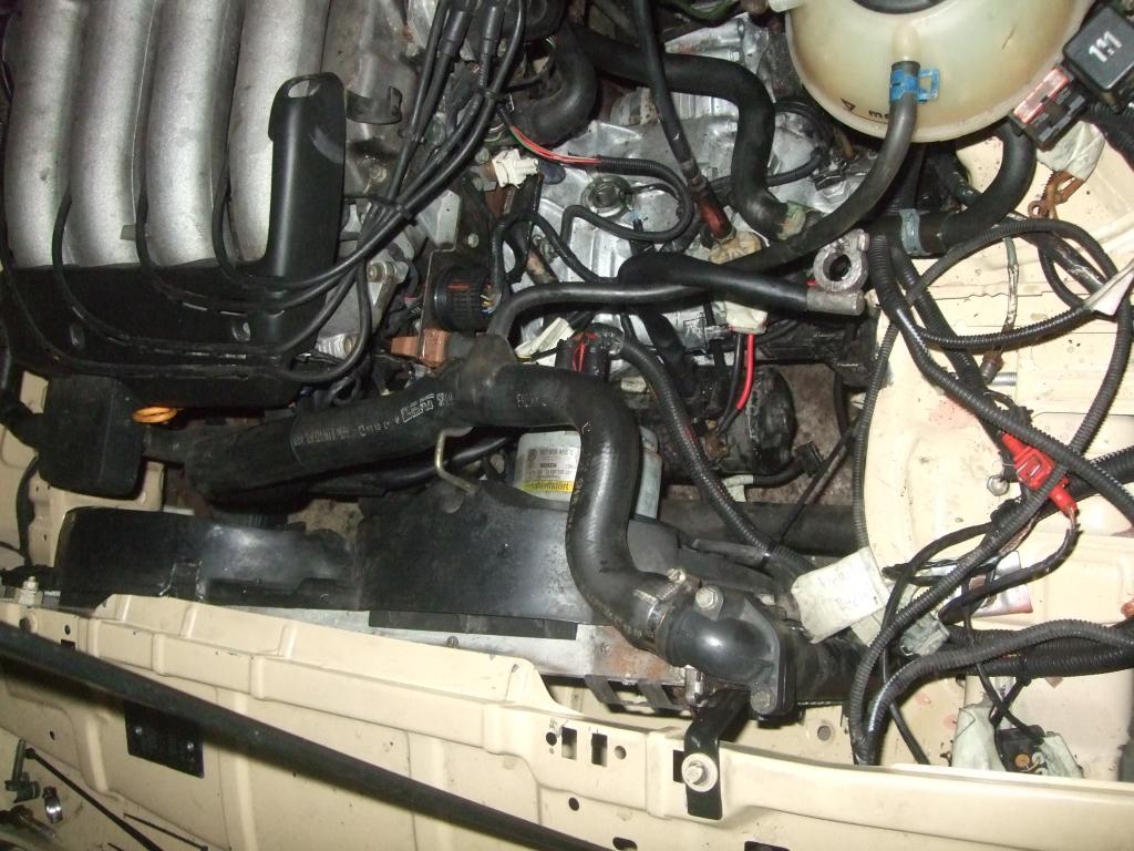 Heute hab ich den Kühler vom Seat montiert. Passt Super, da Gleiches Netzmas wie der Rocco 16V Kühler und die Anschlüsse muss ich dann auch nicht ändern.