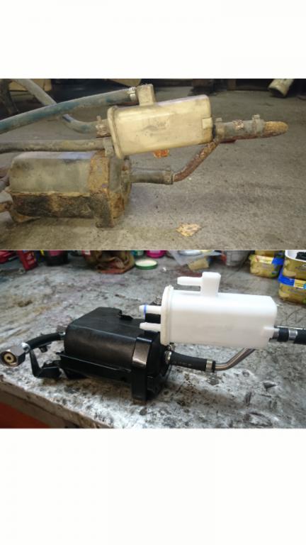 ich habe mal die Benzinpumpe wieder zusammengesetzt, ein kleines vorher nacher Bild die Heckklappe ist auch fast zusammengebaut den Himmel habe ich auch schon fast eingebaut