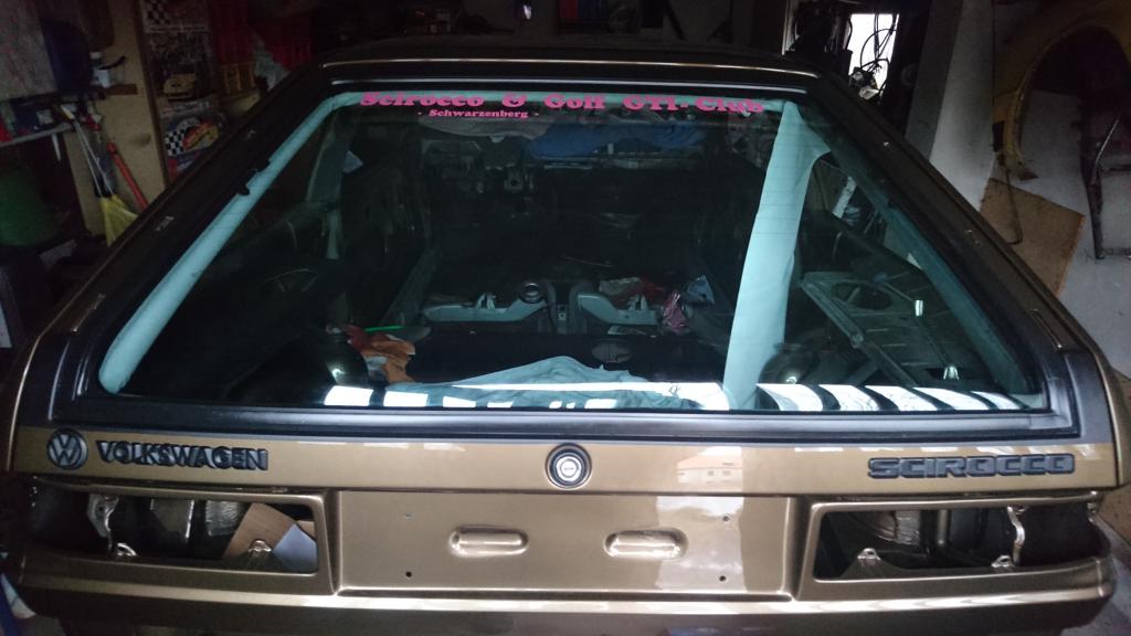 wir hatten den Himmel eingehängt, dann vorne und hinten gespannt und verklebt, dann in den Türen und den hinteren Seitenscheiben und zuletzt die C-Säule. Schöne Arbeit war es dennoch nicht. Für die B-Säule war es gut einen zweiten Scirocco dazuhaben, da konnte man gut abkucken, wie man wo ziehen musste.