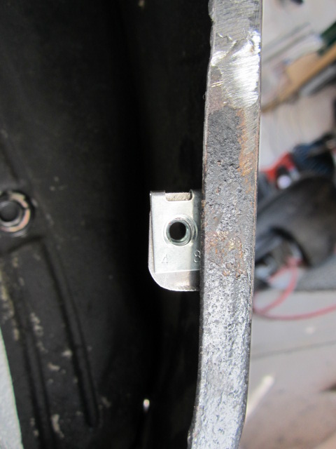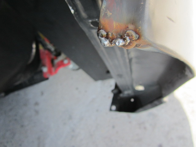 Auf der Fahrerseite mußten noch die Halter für die Innenkotflügel an den Kotflügel geschweißt werden.