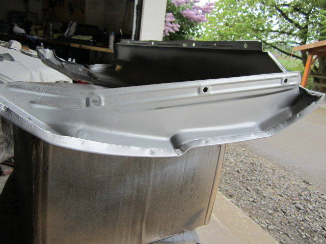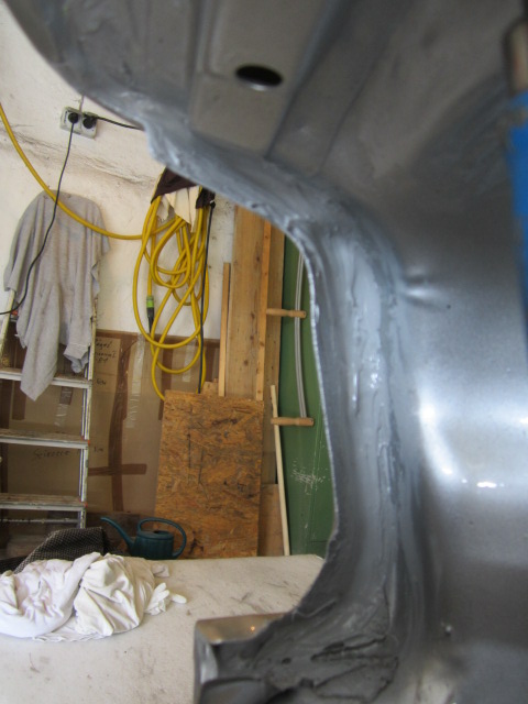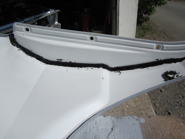 So, heute nicht viel an der Karosse gemacht.Nur die Sicken und Blechüberlappungen mit Karosseriedichtmasse zugeschmiert.