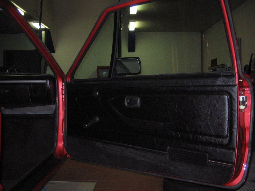 Nach dem wieder ein paar Teile eingetroffen waren, habe ich die neue Tachowelle einebaut und das Armaturenbrett komplettiert. Die vorderen Bremsen fertig gemacht. Die neuen Außenspiegel mit gut erhaltenen Unterlagen montiert und an der rechten Türe die Dichtung eingeklebt und die Verkleidung mit Griffen montiert. An den beiden B-Säulen im Bereich der schwarzen Blende matt schwarze Folien zu geschnitten und aufgeklebt.
