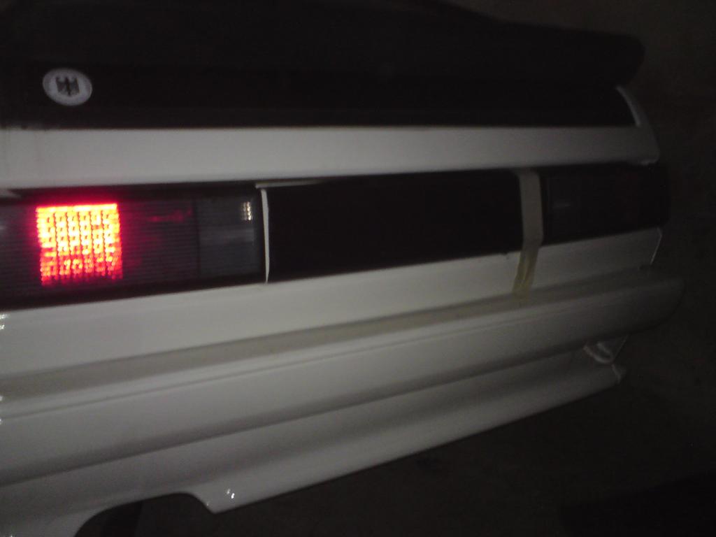 Die Blende werd ich wohl schwarz lackieren und mir passend dazu noch nen Satz Rückleuchten auch noch mit schwarzen Streifen machen. Wie ihr seht, ist die mit nem Klebeband fixiert. Ich wollt die Blende festschrauben und musste feststellen, dass das Bohrbild der Blende net zum Heckblech passt.