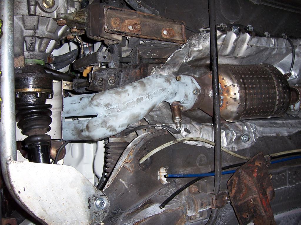 Das ist der KAT des ABA-Motors, den ich in meinen Golf 1 GTI eingebaut habe. Du siehst auf dem Bild zwei Lambdasonden ("hinten", ganz rechts im Bild, nur das abgehende Kabel) und im linken Bereich das Hosenrohr, was ich selbst "zusammenschweißen" mußte, da es nichts gab und gibt: Hält aber schon länger als erwartet (ich hätt darauf keine 2 Jahre verwettet!).