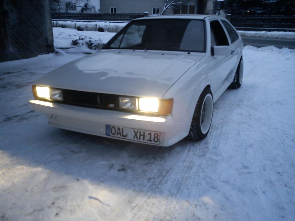 Das mit dem vorderen Nummernschild hat den Hintergrund, dass ich einerseits nen mords Lufteinlass vorne geschaffen hab, der aber dank Stoßstange fast verdeckt ist :hihi: und andererseits, dass ich die vordere Schürze gecleant hab und da kein Nummernschild mehr hinschrauben wollte. Außerdem soll durch den seitlichen Versatz der Lufteinlass vorne doch noch was bringen. Ich möcht nämlich bei Zeiten dahinter nen Ölkühler montieren. Und noch ein Grund für das alles ist, dass ich schließlich 3 Sciroccos hab und einfach jeder anderst sein muss. Ein originaler, bzw. unverbastelt, eine Bastelbude, also dieser hier und so ein Alltagsschraub- / -bastelgefährt, das ist mein schwarzer.