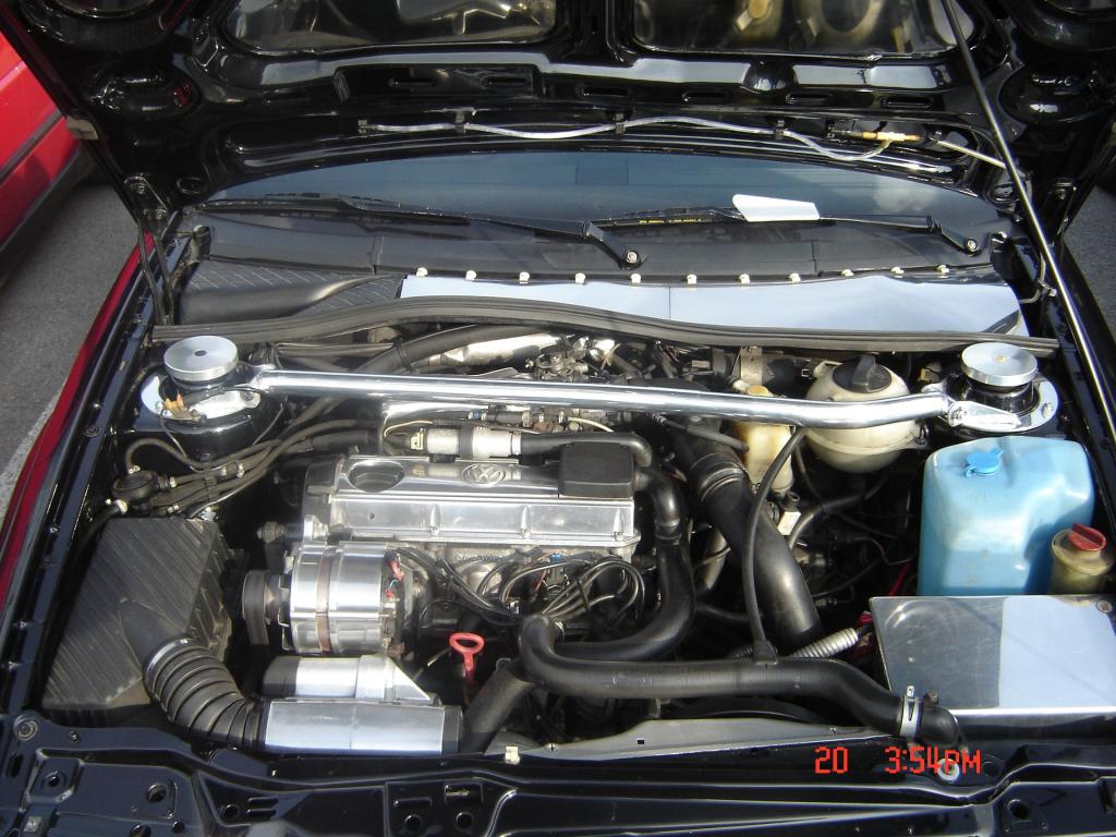 Ansonsten wurde der motor aufgebohrt auf 1,9 liter und mit entsprechend anderen kolben versehen. Die arbeit hab ich machen lassen von KWL Motorsport in Burscheid. Auch den kopf haben die bearbeitet. Die einlassnocke hab ich durch eine 272 grad nocke von schrick ersetzt, auslass war original. Dann hab ich nen Rally-Golf LLK verbaut und nen 68er laderad gefahren. Hier mal ein bild: