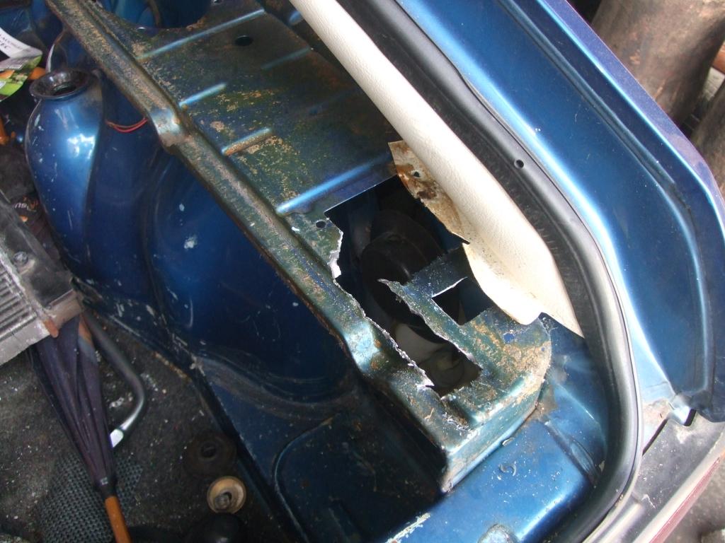 Zur Info:Das A.-Brett, Kabel und Bremskraftverstärker kommt noch raus. Wie zu sehen ist habe ich auch die hinteren Befestigungen der 3 Punkt Gurte entfernt.