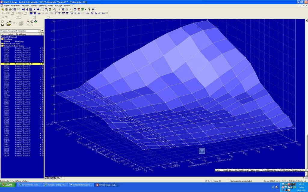 Habe mir mal die Testversion von WinOLS gezogen. Weiterhin habe ich mir die wahrscheinliche Orginalfahrzeugdatei meines Steuergeräts von Chiptuners.org mal zu Testzwecken geladen. Kennfelder finden ist mit WinOLS ja nicht so das Problem.