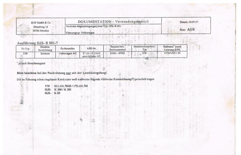 AW: 72 PS RE wg Umweltzone auf G-Kat umrüsten