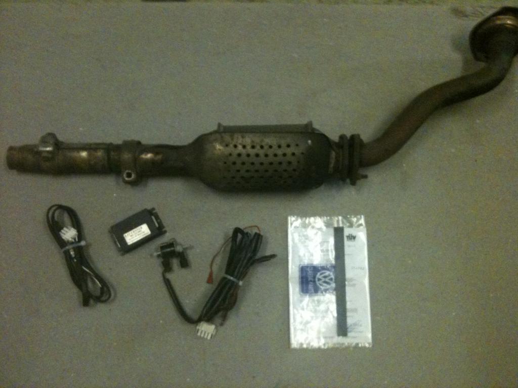 Steuergerät, Lambdasonde (3-polig), Luftregelventil, Kabelbaum, Einbauanleitung, Tüvgutachten, Golf 2 Krümmer mit Lambdasondenanschluss, Golf 2 Hosenrohr und Golf 2 U-Kat (der Tüvprüfer war erstaunt, wie gut die Abgaswerte mit diesem Kat und dem Kit waren!!!)