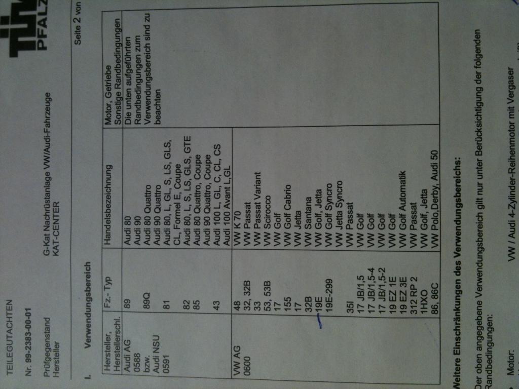 Damit kann man alle VW Audi 1.0 - 1.8L Vergasermotoren (ohne Kat) oder mit U-Kat auf Euro 1 umrüsten! (siehe Liste im Gutachten (Foto))