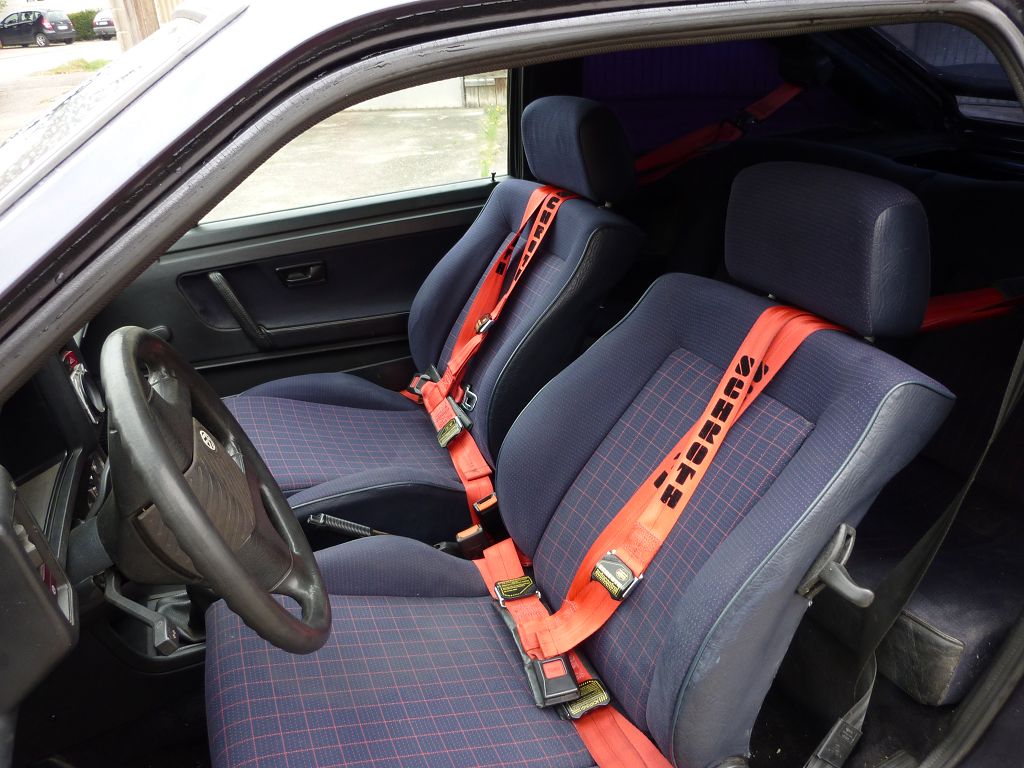 Details aus dem Fahrzeugschein: Motor G60 ca140Tkm, Fächerkrümmer TEZET, FK-Gewindefahrwerk, JE-Design Heckblende, Bonrath-Einarmwischer, Bremsanlage 16V (zur Zeit nicht verbaut), DTM-Rohre sowie nicht verbaute, aber eingetragene Felgen: Borbet A 9x16 mit 215/40R16, ATS Cup-Felgen 7x15 sowie Spurplatten.