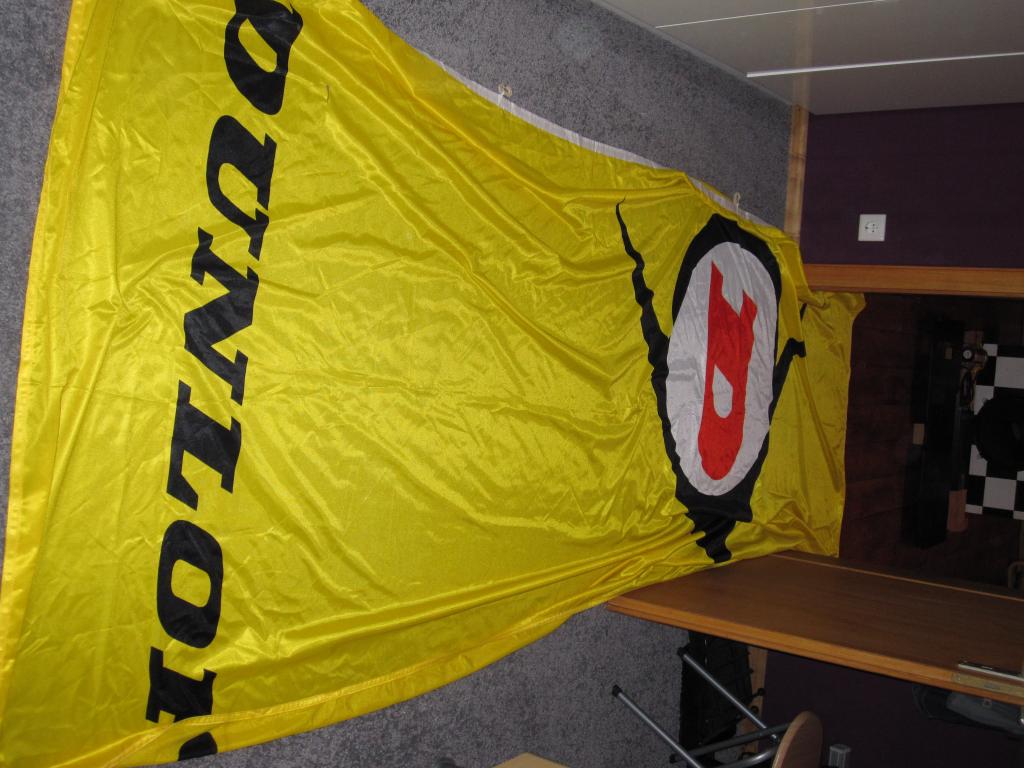 Das Banner ist ca 3,3 x 1,4m hat einen kleinen einriss fällt aber nicht großartig auf.