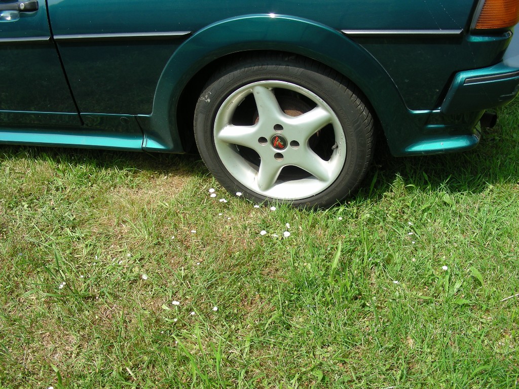 SCIROCCO GT2 BJ 92 , Stahlschiebedach mit Aufstellfunktion ,275 Tsd ,Tüv /AU 03 .12. Anzahl der Vorbesitzer 3 .Das Auto ist für sein Alter und seine Laufleistung in einem gutem Zustand.Aber bei 19jahren sind auch ein paar Kratzer und Dellen( siehe Bilder der Kotflügel vorne) vorhanden. Hinten rechts hatte Er mal eine Beschädigung ,ist aber vom Vorbesitzer repariert worden (siehe Bilder).Des weitern hat Er das übliche SCIROCCO Problem : Rost ansatz neben den Türgriffen. Zahnriemen wurde bei einem Kilometerstand von 271498 km gewechselt.Der Scirocco hat ein Gewindefahrwerk (Eingetragen) verbaut ,des weiteren sind Alufelgen 7Jx15 mit 195/50 R15 Reifen montiert (nicht Eingetragen, aber Teilegutachten vorhanden ) . Es sind aber Borbet A vorne 7,5J xR16 Et35 und hinten 9J x 16 Et 15 mit jeweils 215/40 R16 eingetragen ,sind aber nicht Bestandteil dieses Verkaufes. Des weiteren gibt es noch einen 1 Satz gute 14 Zoll Stahlfelgen mit Sommerrädern .War auf Saisonkennzeichen zugelassen 04-10 sonst stand Er in der Halle Preis VB 999€