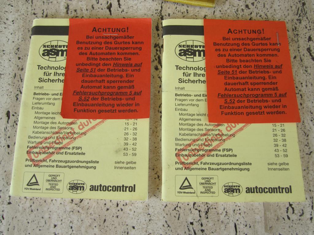 zum Verkauf stehen 2 Schroth Automatik Hosenträgergurte in Gelb inklusive Gurtpolster, "Papiere" und OVP. Die Gurte waren im Bereich der Sitzbefestigungen abgeklebt, damit sie nicht schmutzig werden (siehe Bild). Insgesamt noch sehr guter Zustand.