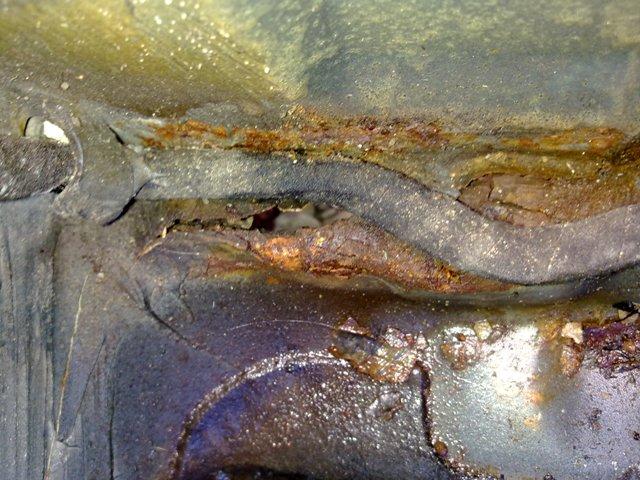 Der Abstand der Säule zur Fensterdichtung ist viel zu groß, das heißt die Karosse ist vorn auf der Fahrerseite gestaucht worden. Die Roststelle allein ist schon bedenklich und so nicht normal. Durch einen Unfall drückt sich die relativ dünne A-Säule meist nach außen und die werksmäßigen Schweißstellen am Dach bekommen Risse, die durch Feuchtigkeit von innen rosten. Bei Reparaturen im Säulenbereich müßte man die Säule komplett tauschen, wobei dann wiederum die Frage der Steifigkeit des Daches zu bezweifeln ist. Bei einem erneuten Unfall (man will das natürlich nicht hoffen), womöglich mit einem Überschlag, möcht ich nicht im Auto sitzen.