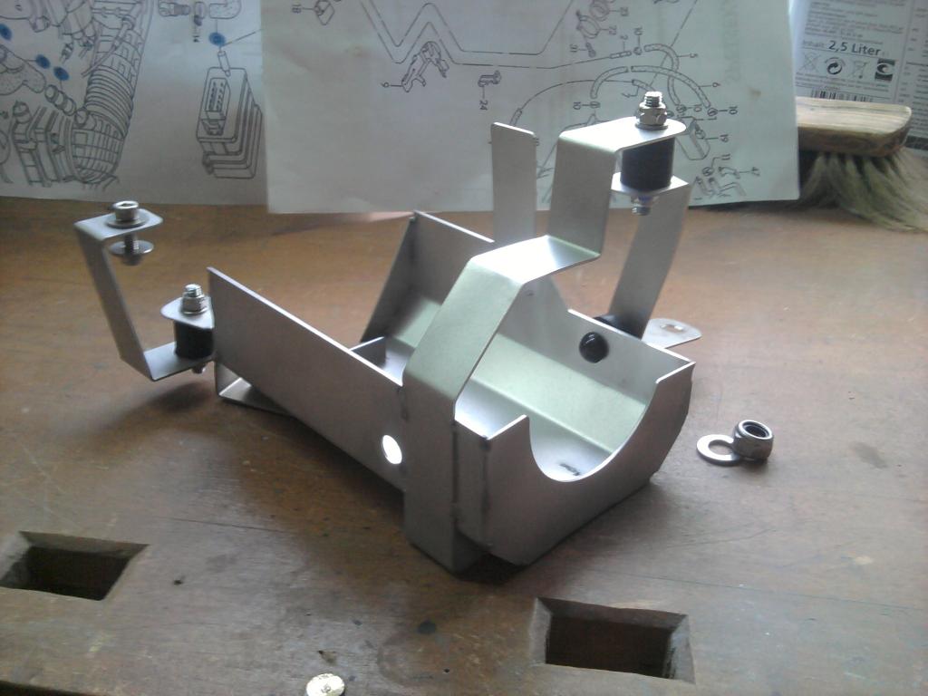 Sind aus 1,0 mm Edelstahlblech gelasert, gekanten, WIG - geschweißt und sandgestrahlt. Dank an meine Firma.