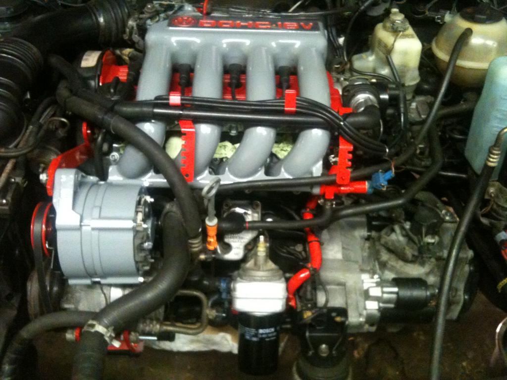 Der Motor hat auf allen 4 Zylindern zwischen 14,5 - 16 bar Kompressionsdruck, er springt sofort an und dreht normal hoch (bis 4000 U/min, höher habe ich ihn aufgrund der Revision noch nicht gedreht...). Wenn der Motor dann wärmer wird (ab ca. 70°C Wassertemperatur) wird der Leerlauf etwas unruhiger...
