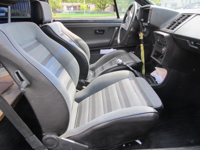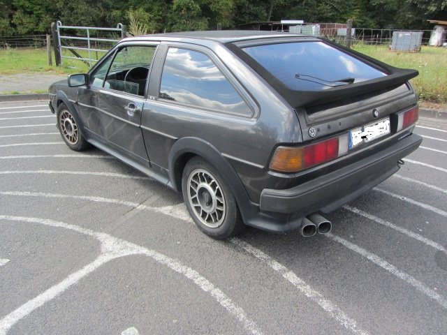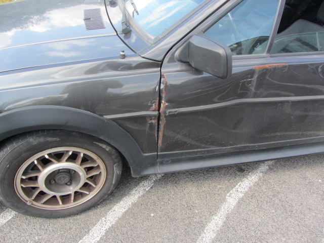 Der Wagen hatte einen leichten Unfall vorne links wie auf den Bildern zu sehen. Bei einer Reparatur wären Kotflügel und Türe sowie der Schlossträger und das Blech hinter der Stoßstange zu erneuern. Am Träger ist nichts dran. Die Haube ist neu drauf von einem GTII in grau Metallic. Man sieht den Unterschied kaum zu graphit aber ich wollte es erwähnt haben.