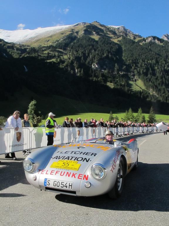 Nach Schneefall oberhalb von 2.000 m am Mittwoch bei der Fahrzeugabnahme und Regen in Zell am See vor dem Ferry Porsche Congress Center wo ein FIA-Stewart den technischen Zustand der Teilnehmer-Klassikerrennwagen prüfte, verwöhnte Sonnenschein und kristallklar blauer Himmel die Besucher und Zuschauer beim ersten Revival des Grossen Bergpreis. Temperaturen in Ferleiten mit über 20 Grad Celsius und oben am Fuscher Törl mit 15-20 Grand, machten die Auffahrt für die alten Rennwagen und die Ankunft im Ziel so stimmungsvoll, daß nicht nur die erfolgreiche Zieldurchfahrt nach fast 14 km, 92 Kurven und 14 Kehren euphorisierend zu wirken schien.