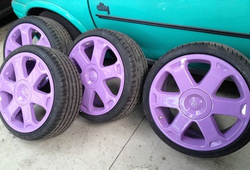 Die Felgen wurden von einer Lackiererei komplett aufgearbeitet und NEU Lackiert in Milka Lila.