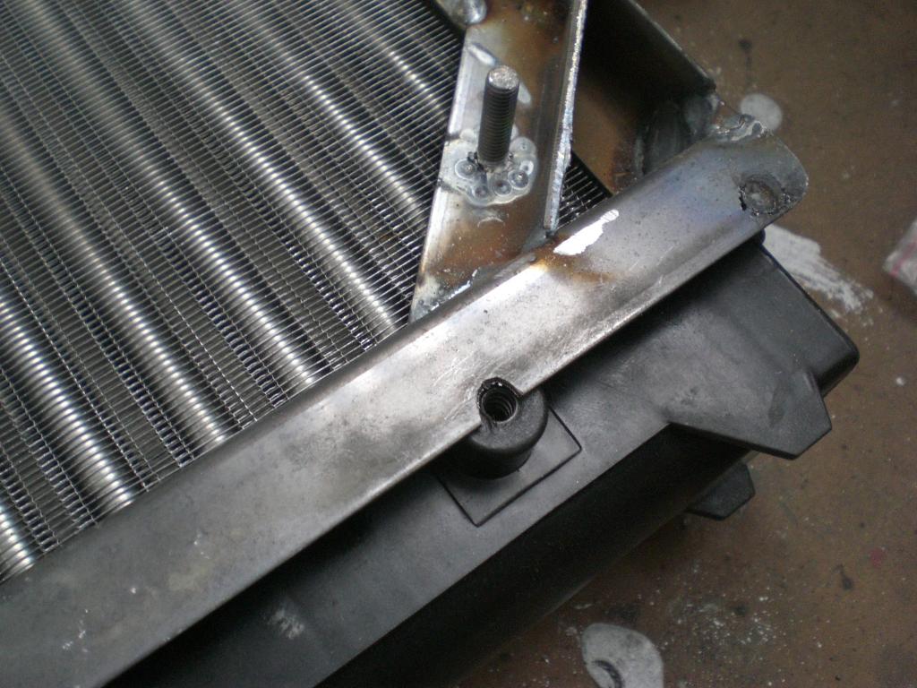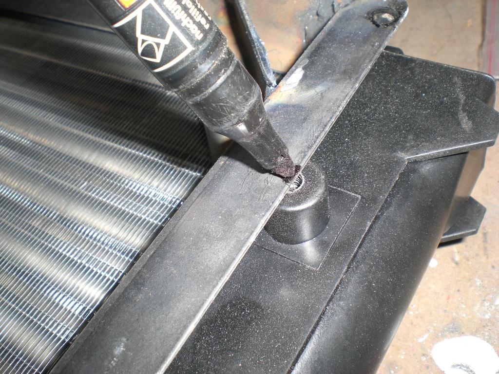Danach 4 Gleiche Ecken Sägen und anschweißen. Das sind dann auch die äußersten Halter der Lüfter. Dann die Lüfter rein und die fehlenden Innenbefestigungen zuschneiden und einschweißen. Befestigung ( Beim Lüfter enthalten ) anzeichnen und Loch bohren Rückseite entgraten . Senckkopfschraube rein ( bei mir M6 x 30 ) und anschweißen. Alle Schweißnähte auf der Rückseite abschleifen. !!! Wichtig !!!