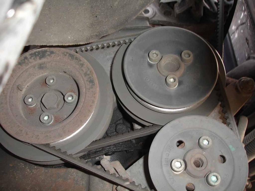 Ich versteh nicht, warum der Antrieb der Servopumpe zusätzlich über eine zweite Riemenscheibe der Wapu laufen muss. Eigentlich reicht doch von KW zu Servopumpe.