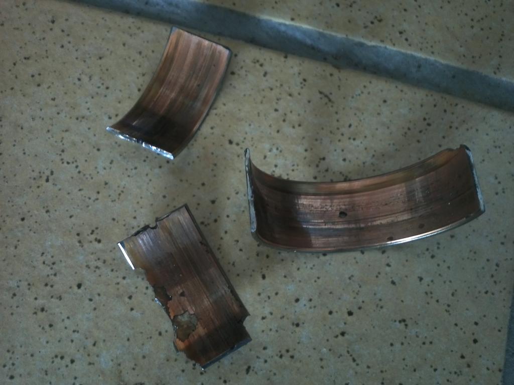Hab alles mit ner Motorspülung mal durchgepustet und sauber gemacht. Auf den Bildern seht ihr die neue Pumpe und die "Lagerschalen" des 4. Kolbenpleuels.