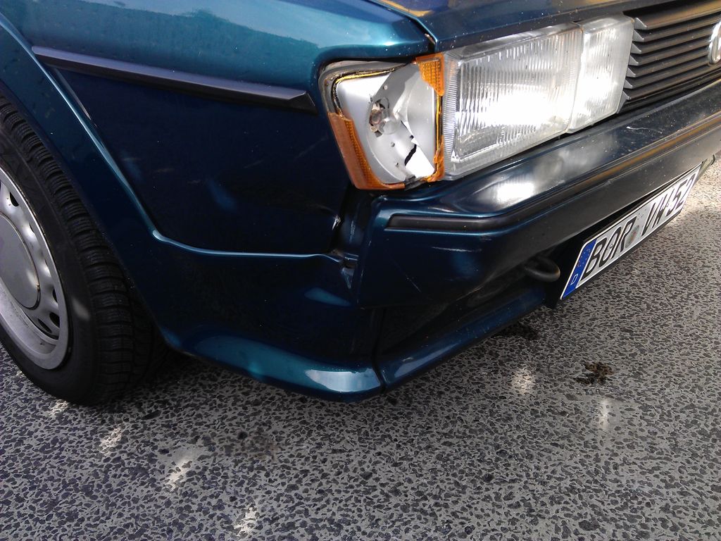 Heute einen Unfall gehabt... wie tut erstmal nichts zur Sache! Jedenfalls ist vornerum jetzt so ziemlich viel verzogen. Vorne rechts auf den unteren Kotflügel, noch vorm Vorderrad gabs einen drauf. Geschwindigkeit.. keine Ahnung. Geschätzte 10Km/h von mir und 20Km/h vom Unfallbeteiligten.