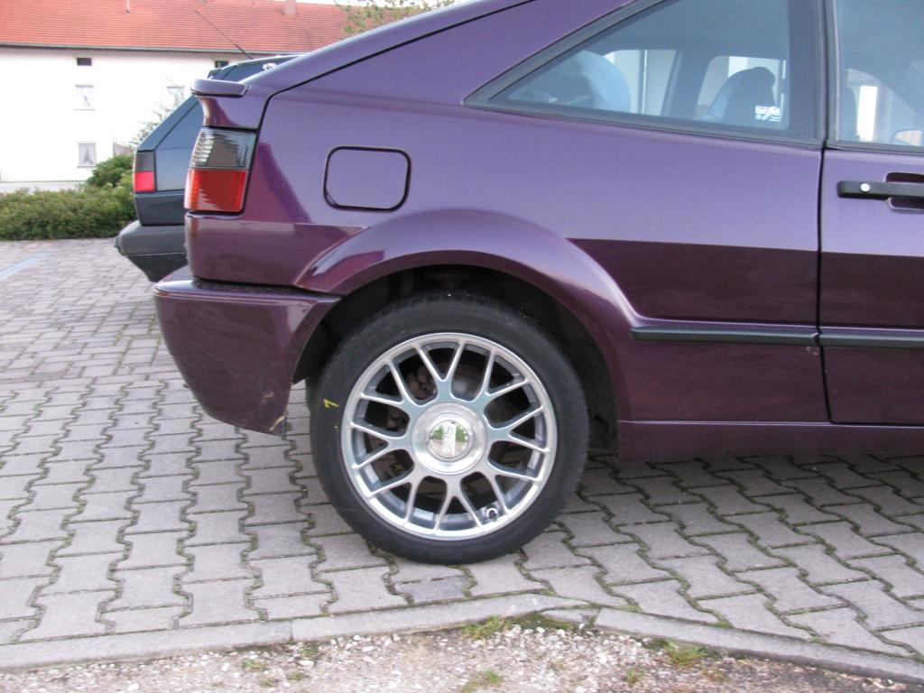 Übrigens das schöne beim Corrado: Platz ohne Ende im Radhaus auch ohne Bördelung. Unter den 7,5x16(17) ET35 konnte ich ohne Probleme noch mal unter jedes Rad 5mm Platten unterlegen, eventuell ginge hinten sogar noch etwas mehr.