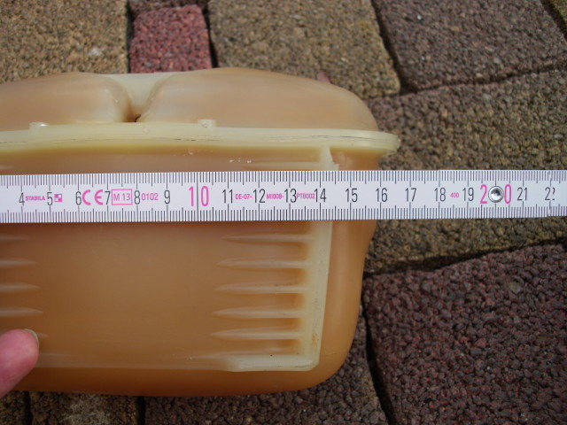 Der Ausgleichsbehälter an meinem 86iger Tropic mit EX Motor ist nicht mehr ansehnlich und ist auch leicht inkontinent, weil er einen kleinen Riss hat. Bei VW gibt es als Ersatz nur noch das Teil in den man einen zusätzlichen Geber reindrehen kann. Müsste ich also mit einem extra Stopfen verschließen, das will ich nicht. Habe mir dann einen im Netz bei ATS-24 (NG Autoteile aus Berlin) bestellt. Dieser hat aber leider nicht gepasst, es fällt sozusagen durch die Domhalterung durch, weil ca. 5mm zu schmal (siehe Fotos). Hersteller: Dasis. Rumbiegen an der Halterung kommt nicht infrage.