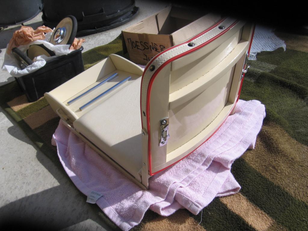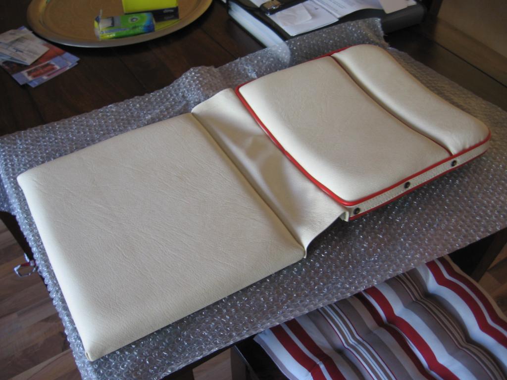 Der Sitz wurde auch noch bezogen, in Rauchweissem Leder und das rote Köterband an den Originalstellen wieder eingesetzt.