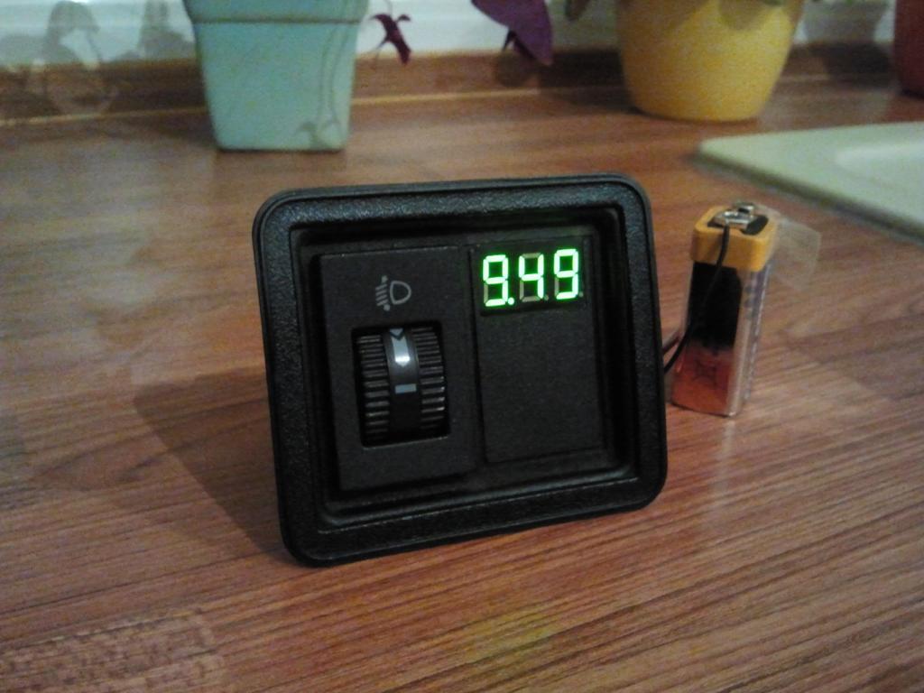 hatte heute Abend Langeweile und ein digitales Voltmeter gebaut. Da ich später noch eine analoge Öldruckanzeige neben dem Ascher verbaut werden soll, fiel diese Stelle als Platz raus. Bei Ebay hab ich für knapp 7 Euro die Anzeige erstanden - grünes Display, geringe Abmaße (http://www.ebay.de/itm/370830421647).