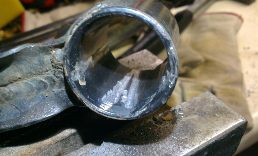 bin gerade dabei die Querlenkerlager zu tauschen. Ein Querlenker habe ich schon neu bestellt, weil er nicht raus wollte und ich ihn deswegen aufflexen musste. Den 2. habe ich aber wunderbar raus bekommen. Nun habe ich das vordere Lager raus gebohrt (raus brennen wollte ich nicht) und habe dabei diese Riefen in der Buchse gemacht. Wenn man mit dem Finger drüber geht, spürt man diese auch.