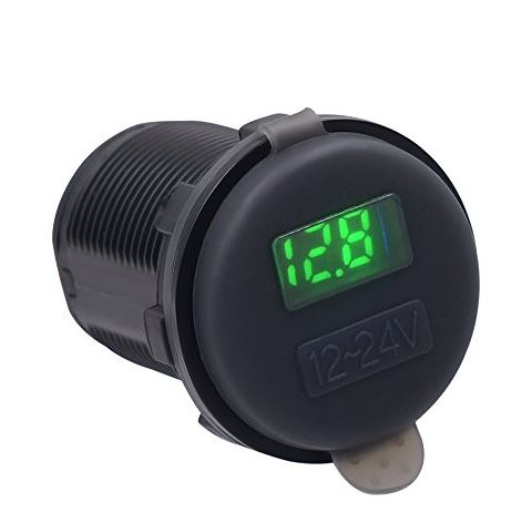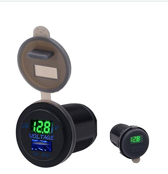 Eine USB-Ladebuchse mit integriertem Voltmeter. Hat man kein Handy angeschlossen, wird die Bordspannung angezeigt,