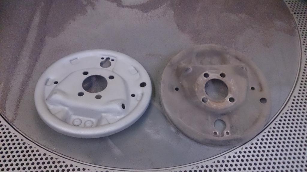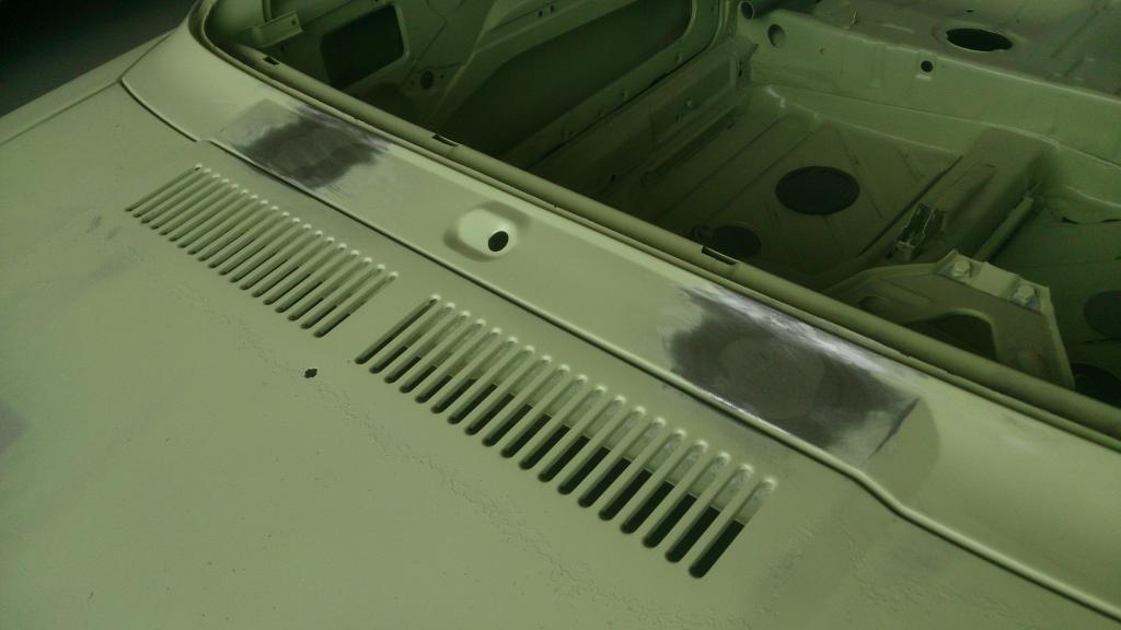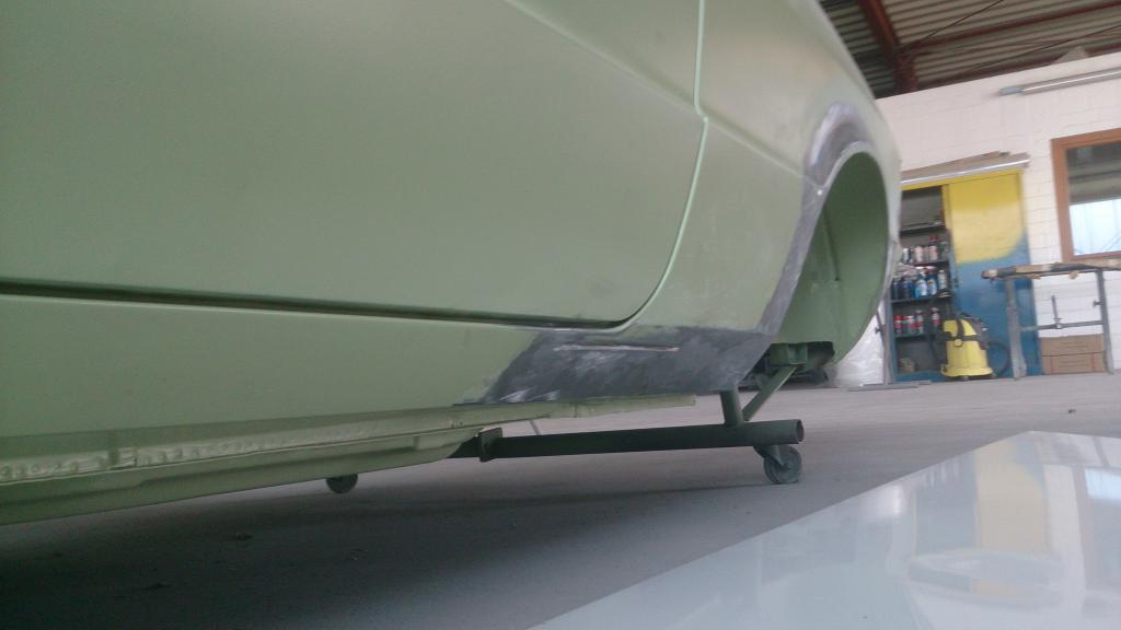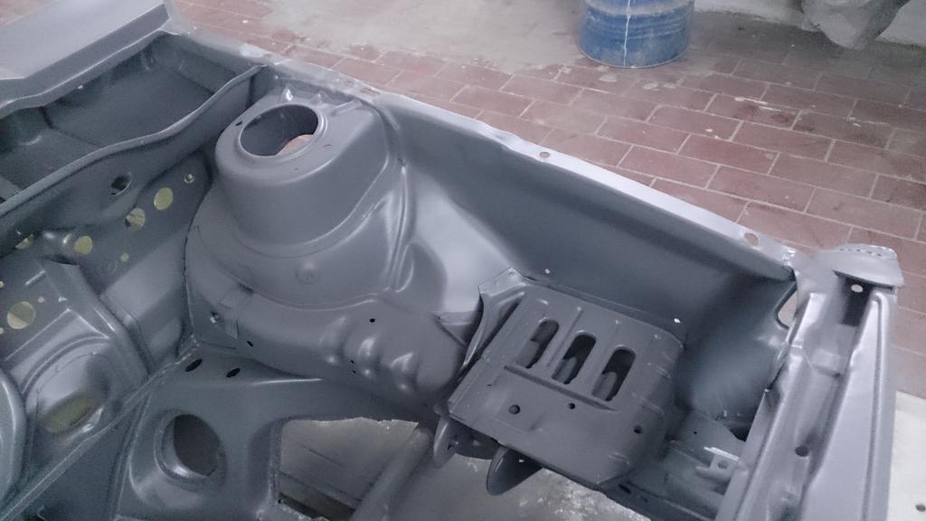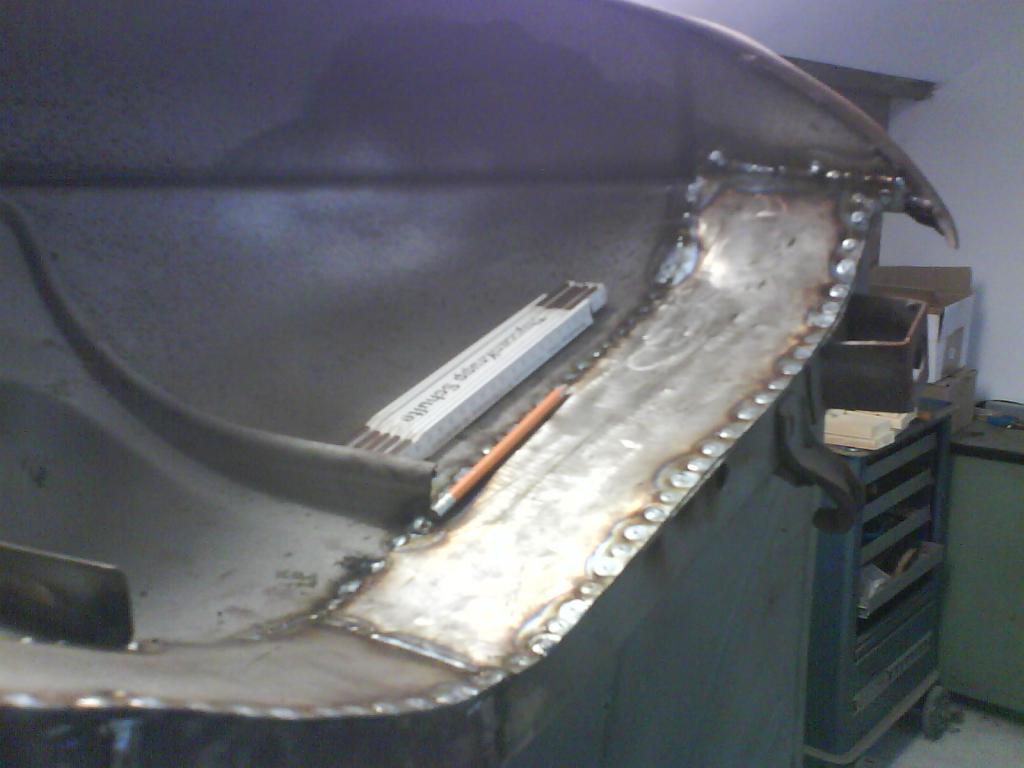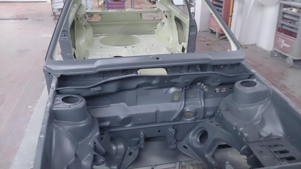 als die Schweißarbeiten erledigt waren, ging die Karosserie erneut zum Sandstrahlen mit sofortigen grundieren.