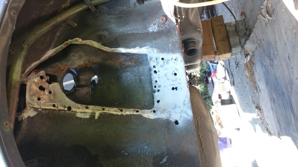 Beim zerlegen sind leider einige unschöne Roststellen ans Tageslicht gekommen, Tankrohrhalter komplett durchm Radhaus hinten links ist daher teilweise herausgeflext und wartet auf ersatzblech.