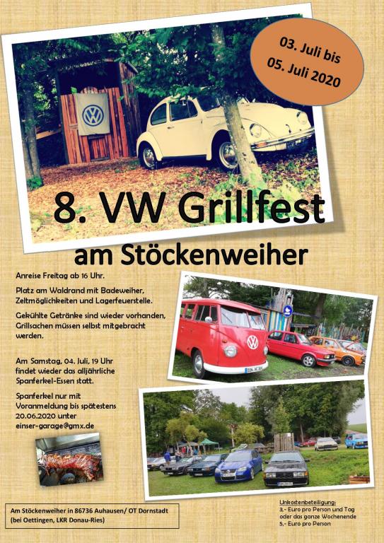 8. VW Grillfest am Stöckenweiher (Donau-Ries) 03.07. bis 05.07.2020