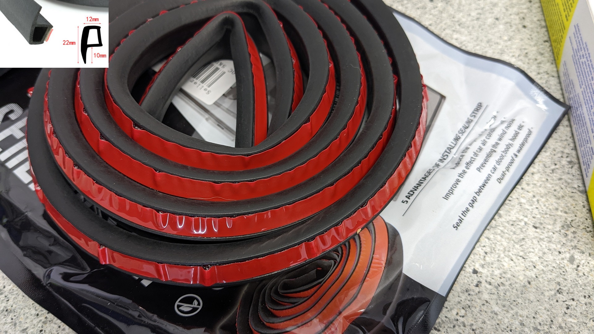 Dann diese Dichtung (sogar 1mm größer) direkt in China gefunden, angeblich mit echtem 3M Tape: