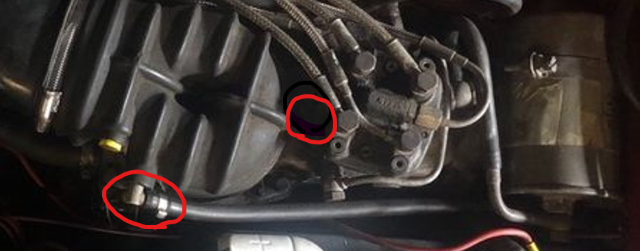 Hi Marc,Der Unterdruckschlauch vom Gummistutzen des Mengenteilers geht zum linken Kotflügel und verschwindet dort.