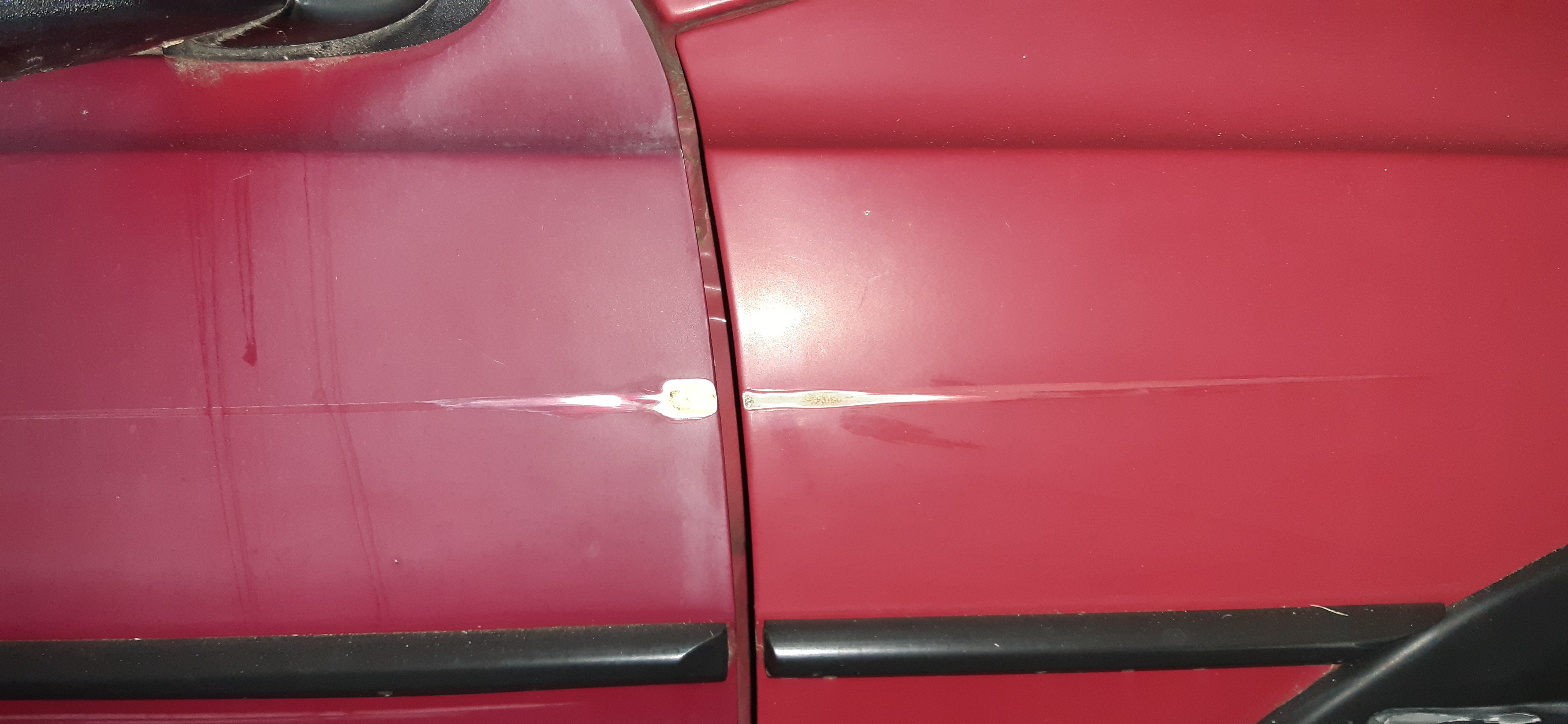 In einem Winter hat eine unbekannte Person (vermutlich Kind) Schnee im Bogen von der Motorhaube gewischt und dabei einen Kratzer in den lack gemacht.