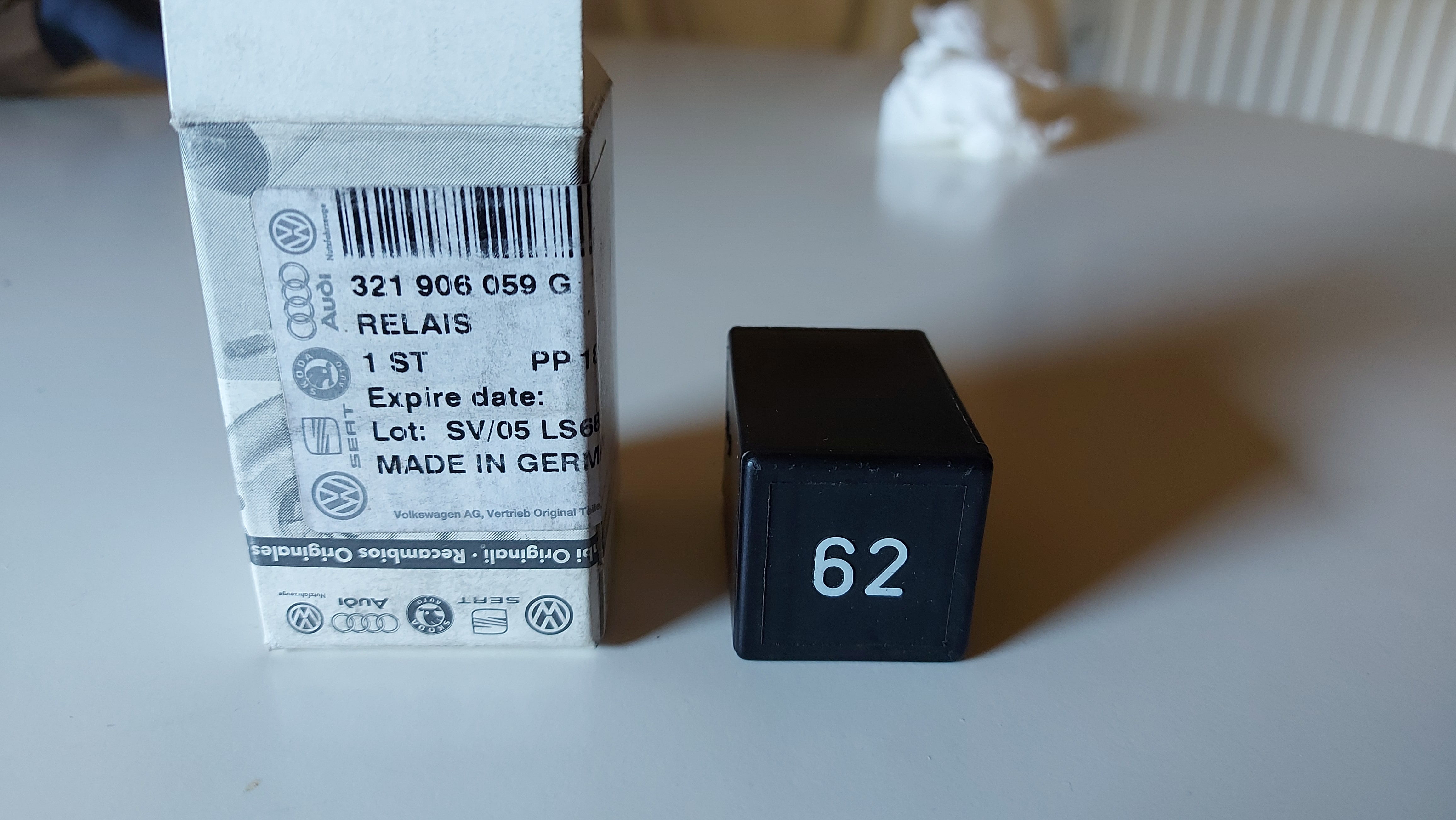 Habe beim lokalen VW Händler mal nachgefragt. Kraftstoffpumpenrelais 62 (321906059G) ist entfallen, Ersatz ist Relais 65 (321906059H), welches noch bei VW Classic Parts für 47,99€ + 7,50€ Versand zu haben ist, Newsletter Abo gibt 10% Rabattcode B-)