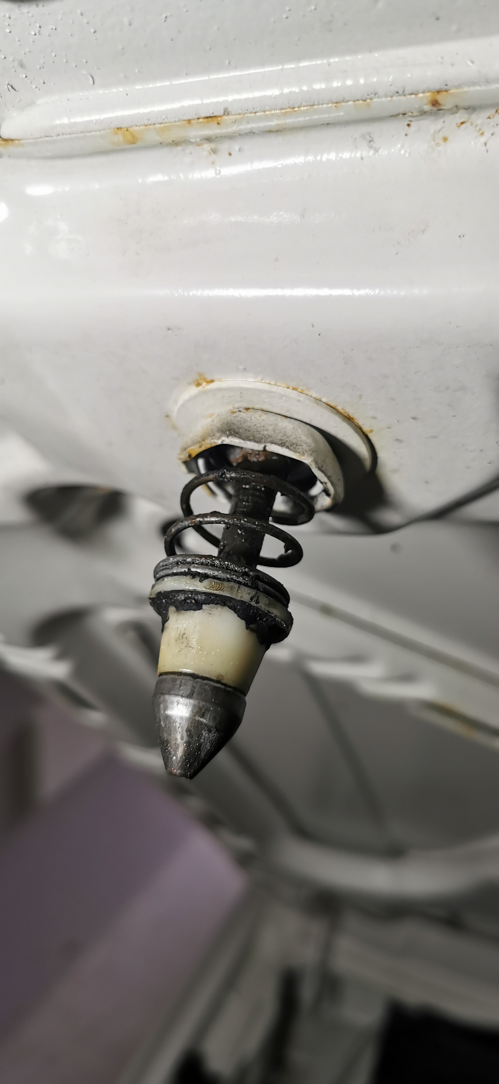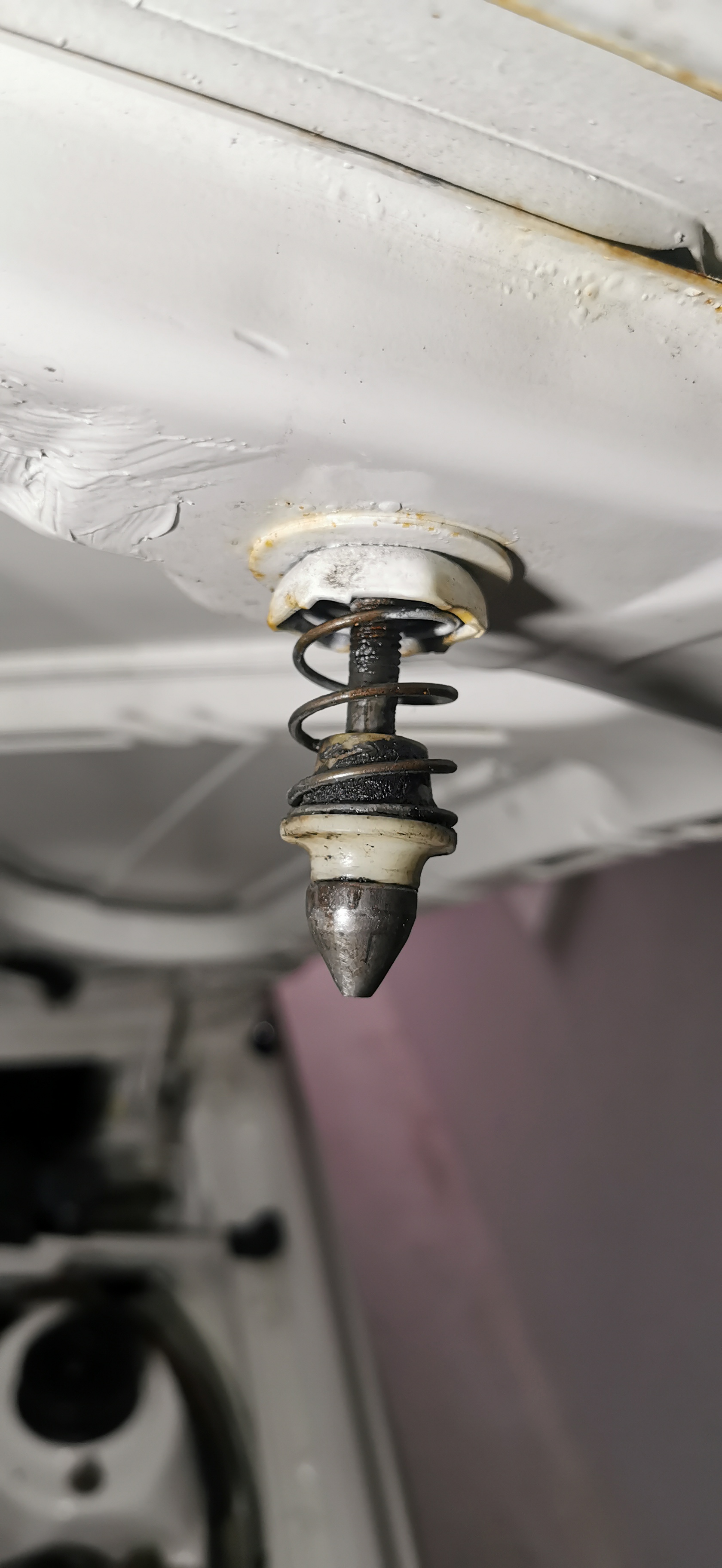 Leider steckt die Schraube vom Schließzapfen total verrostet im Konter hinter dem Blech. Auch der sonst so treue Rostlöser wird dem Ganzen nicht Herr. :/