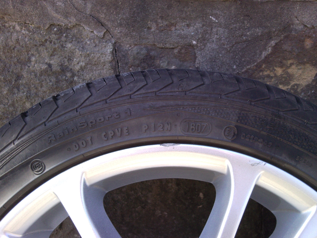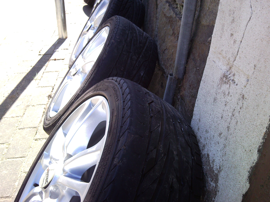 2 der Reifen haben noch ein gutes Profil >5mm, die anderen zwei sollten erneuert werden. Aufgrund schlechter Sturzeinstellung sind die auf der Außenseite stark heruntergefahren.
